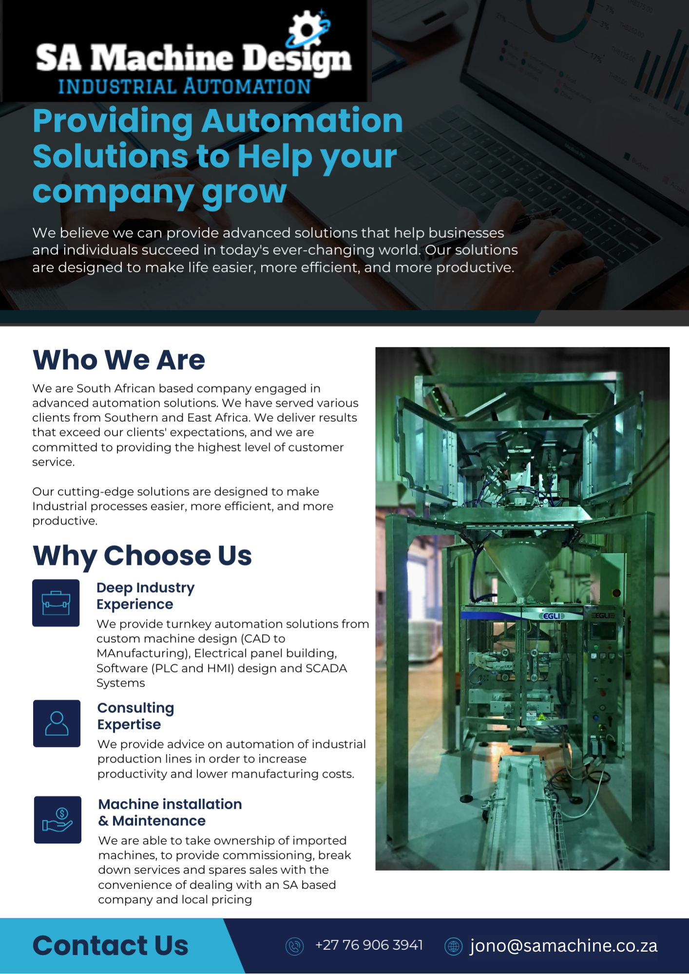 Contact us with all your production line and machine automation needs. Turnkey solutions using main all major PLC brands.